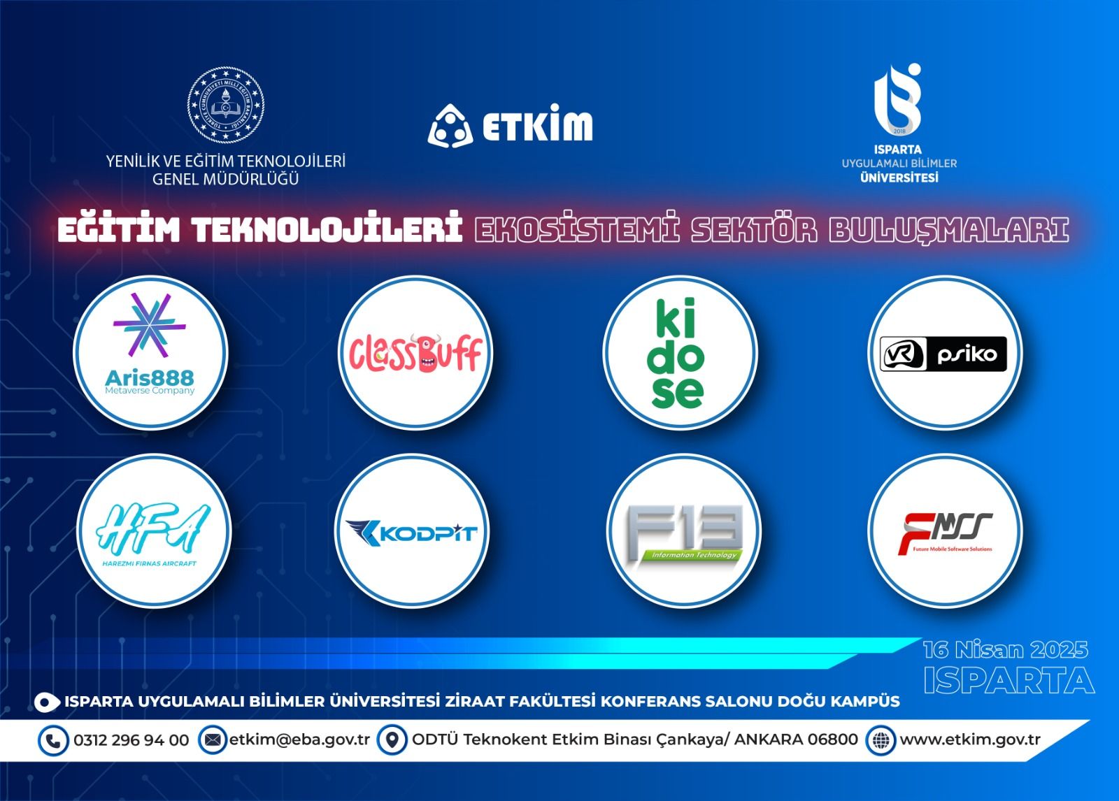 Millî Eğitim Bakanlığı Yenilik ve Eğitim Teknolojileri Genel Müdürlüğü bünyesinde faaliyet gösteren AR-GE ve Ekosistem Daire Başkanlığına bağlı Eğitim Teknolojileri Kuluçka ve İnovasyon Merkezi (ETKİM) koordinesinde, Isparta Uygulamalı Bilimler Üniversitesi Kariyer Geliştirme Uygulama ve Araştırma Merkezi Müdürlüğü işbirliğinde üniversite öğrencileri ve teknokent firmaları ile eğitim teknolojileri alanında faaliyet gösteren firmaların bir araya getirileceği bir etkinlik düzenlenmesi planlanmaktadır.